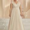 Prachtige A lijn trouwjurk met kanten lijfje van de nieuwe Bianco Evento collectie. De rok is gemaakt van soepel vallende tulle en de bovenzijde van prachtig zacht kant. De bruidsjurk is verkrijgbaar in de maten S tot en met 5XL en zit fantastisch!