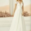 Prachtige A lijn trouwjurk met kant van de Bianco Evento 2021 collectie. De rok is gemaakt van soepelvallende chiffon en de bovenzijde van prachtig zacht kant. De bruidsjapon is verkrijgbaar in de maten S tot en met 2XL.