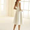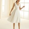 Korte trouwjurk van chiffon met een V hals van het merk Bianco Evento. De Kornelia is een korte versie van de best seller jurk Dalila. De jurk is verkrijgbaar in de maten S tot en met 5XL.
