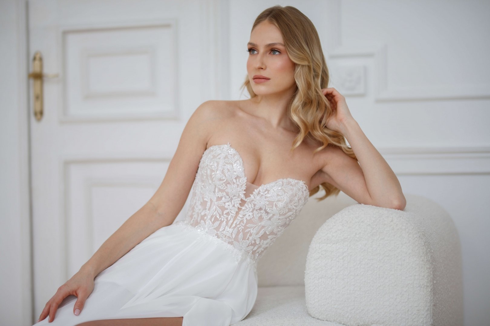 Prachtige trouwjurk Alpacino van het merk Jarice. De jurk is in de winkel aanwezig om te passen in een maatje 46/48.