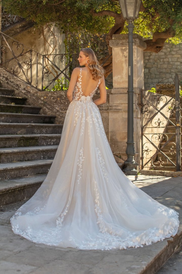Prachtige trouwjurk Anny van het merk Jarice. De jurk heeft prachtige 3D bloemen en is in de winkel aanwezig om te passen in een maatje 42/44.