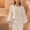 Bianco Evento stretch crepe bruids top met 3 kwart mouwen E417