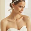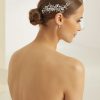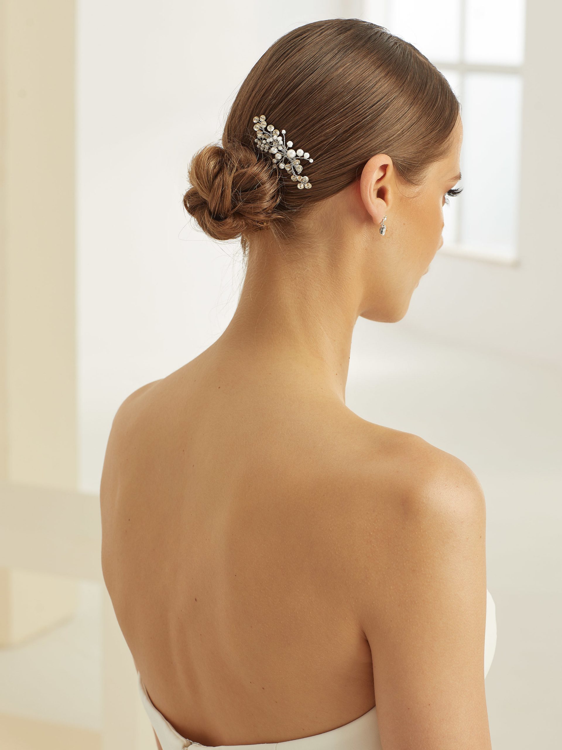 Prachtige sierlijke haar accessoire van het merk Bianco Evento. Dit haar sieraad is bewerkt met bloemetjes, kleine strass kristalletjes en parels.