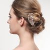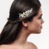 Haar juweel versierd met bloemetjes, parelmoer blaadjes, pareltjes en strass. Deze haar accessoire is van het merk Poirier en is verkrijgbaar in zilver, rosé en goud.