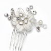 3 bloemetjes op kam van het merk Poirier. De bloemetjes zijn verkrijgbaar in zilverkleur of goudkleur en ze zijn bewerkt met pareltjes en strass.