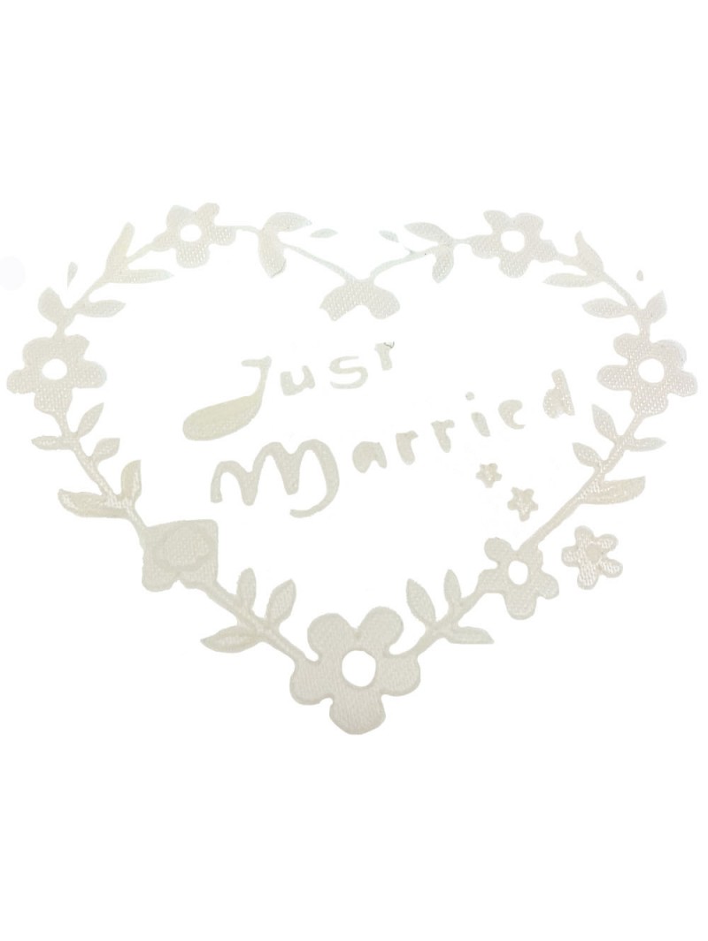 | tekst poirier | Just married in strass, Just Married zijden hart in stof gedrukt, zonder opdruk |