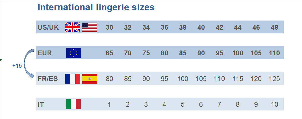| Omvang-Cup | 65A, 65B, 65C, 65D, 70A, 70B, 70C, 70D, 75A, 75B, 75C, 75D, 80A, 80B, 80C, 80D, 85A, 85B, 85C, 85D, 90A, 90B, 90C, 90D |