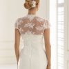 Bolero van kant met klein mouwtje van het merk Bianco Evento. De bolero is verkrijgbaar in ivoor en zwart maat XS tot en met XL.