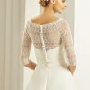 Top van het merk Bianco Evento. Deze prachtige bolero top van boho kant heeft 3/4 mouwtjes en een mooi afgewerkte knoopjes sluiting op de rug. Verkrijgbaar in maat S tot en met 5XL.