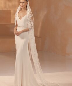 Bianco Evento sluier met een kanten rand van zachte tule S473