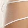 Voordelige 2-laagse sluier van het merk Bianco Evento met satijnen bies. De lengte van de soft tulle is 90 cm van de onderlaag en 70 cm van de bovenlaag. De sluier zit op een kam om het eenvoudig in het haar te verwerken.