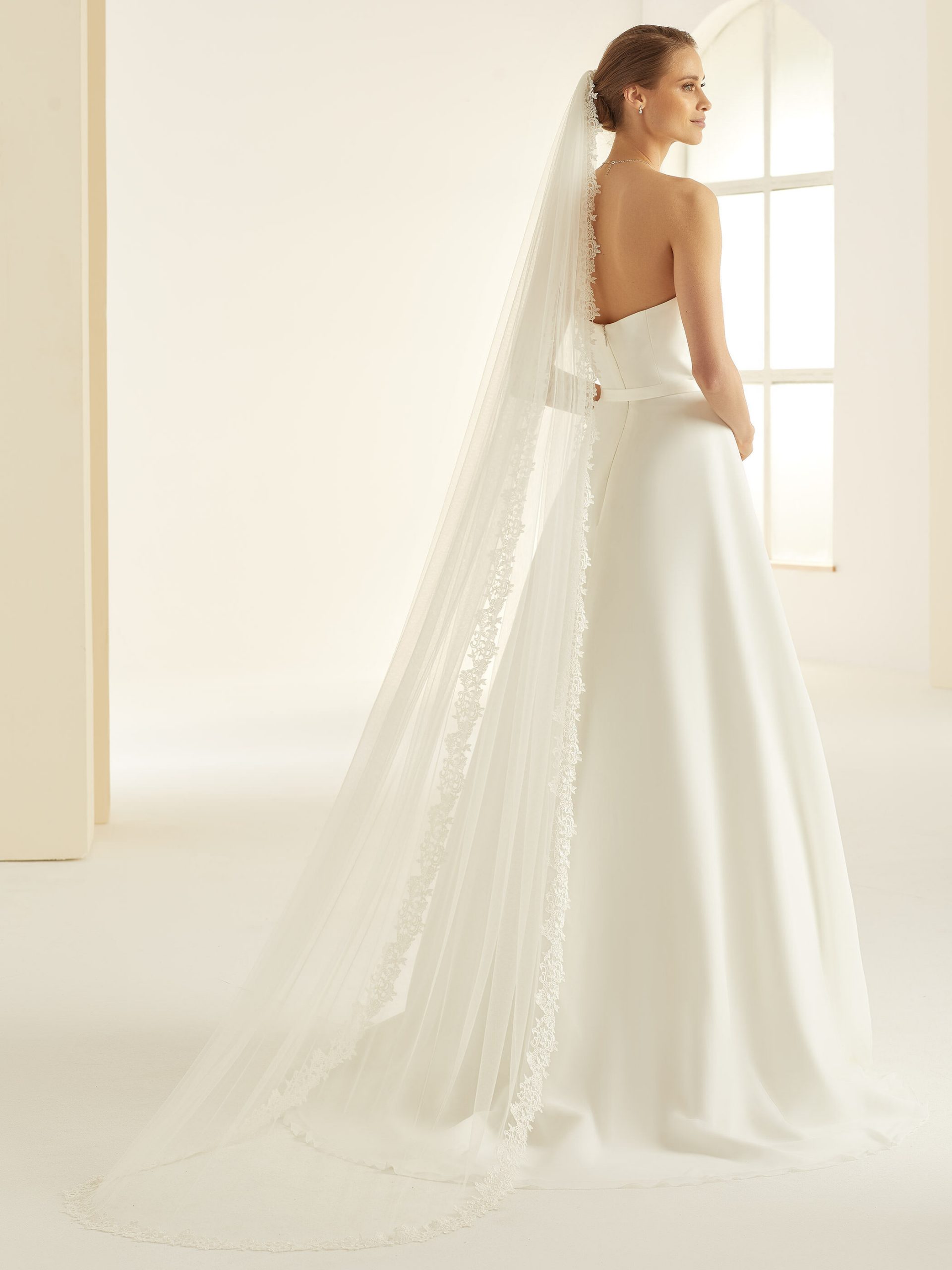 Zoek jij een prachtige sluier van Bianco Evento met een kanten rand ? Dan is de sluier S338 of S370 zeker een goede keus! De S 338 is een enkel laags sluier en de S370 is een 2 laags sluier van 220 cm.