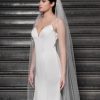 Enkel laags of dubbel laags sluier van tulle versierd met kristalletjes. Beschikbaar in 3 kleurcombinaties; ivoor tule met zilveren kristalletjes, champagne tule met rosé kristalletjes en ivoor tule met rosé kristalletjes. Lengte 80 en 300 cm.