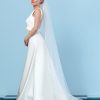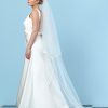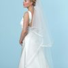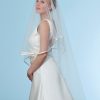 Deze sluier is afgewerkt met een smalle satijnen bies. Verkrijgbaar in wit of gebroken wit (ivoor) en in 1 of 2 lagen tulle. Wilt u de sluier dus zoals in de film van voor uw gezicht naar achteren kunnen doen , dan kiest u sowieso voor een 2 laags sluier. De 2 laags sluier heeft vanzelfsprekend ook meer volume.