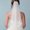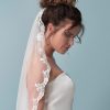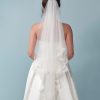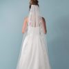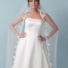 Deze sluier S50 van het merk Poirier bestaat uit tulle en fijne kant. Het kant heeft een bloemmotief, met pareltjes en pailletten.U kunt kiezen uit verschillende lengtes en uit een 1 laags sluier of een 2 laags sluier. De voorbeelden hiervan staan in de foto galerie.