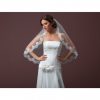 1 laags Sluier in ivoor (gebroken wit) van het merk Poirier bewerkt met fijn kant.
