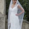 Schitterende sluier uit de collectie van Randy Fenoli van Say yes to the dress ! Deze enkel laags sluier met kanten rand is 280 cm lang, en gemaakt van mooie soft tulle. Het kant begint onder de ellebogen.