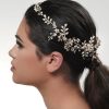 Shine op je mooiste dag met dit luxe haar sieraad van het merk Poirier. De haaraccessoire is goudkleurig en heeft strass steentjes en blush- en ivoorkleurige parels. Je kunt dit glanzende haarsieraad op meerdere manieren verwerken in verschillen types bruidskapsels. Kijk wat je zelf het mooiste vindt bij een proefkapsel.