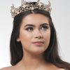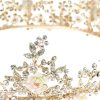 Een echte eyecatcher deze goudkleurige kroon van het merk Poirier. Voor de romantische bruid die zich een echte prinses wil voelen. Deze goudkleurige kroon heeft ivoor- en blush kleurige porseleinen bloemetjes en strass blaadjes, maar ook blush kleurige pareltjes. De kroon vertegenwoordigt de trouw-look van een ware royal en is te gebruiken direct op het hoofd of op een sluier.