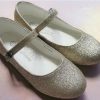 Ballerina met hele fijne glittertjes. Superleuk als verkleedschoen, maar kan ook zeker onder een communiejurk of andere feestjurk! Verkrijgbaar in maat 24 tot en met 35. Bij deze meisjes schoenen worden 2 bloemclips en een bloem broche haarspeld geleverd.