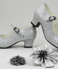 Ballerina met hele fijne glittertjes. Superleuk als verkleedschoen, maar kan ook zeker onder een communiejurk of andere feestjurk! Verkrijgbaar in maat 24 tot en met 35. Bij deze meisjes schoenen worden 2 bloemclips en een bloem broche haarspeld geleverd.