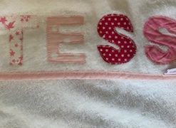 Badjas unisex van een prachtige kwaliteit, die u kunt personaliseren met naam of tekst achter op de rug. (Heeft u liever een kleiner formaat op de rechterborst geborduurd, dan kunt u dit vermelden bij de opmerkingen ) Keuze uit verschillende lettertypes! De badjas is verkrijgbaar met of zonder capuchon.